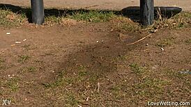Chrissy Fox squirts piss outdoors in public solo scene