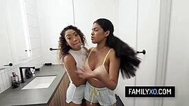 naughty chicks trick stepdaddy into forbidden threesome 😏