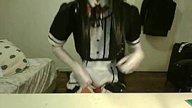 emotional asian sissy maid cosplay stockings glasses swallows every cumshot drop hungrily