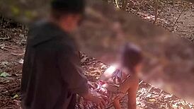 young wife cuckolds hubby masturbating while stranger fucks her on trail hard