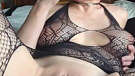 Milf's crotch-less fishnets make cock rock-hard during humiliation