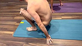 husband's friend bareback fucks wife creampie yoga pants workout