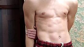 After school, the skinny flexible bodybuilder flexes his toned muscles in homemade amateur display for admirers.