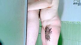 Ahijastro Espía Madrastra en Baño y Terminan Follando Salvaje con Tetas Naturales y Culo Tatuado