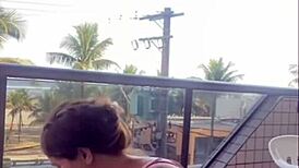husband catches wife flashing big pussy balcony bikini wash