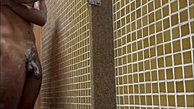 shower spy catches huge black cock in lockerroom gym