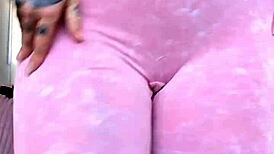 sexy gym girl dry humps his cock through tight workout clothes