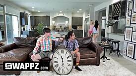 fit horny teen stepsis bro 4some living room jizz orgy!!