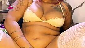 Ugly ebony big tits big ass babe masturbates monster cock to creampie orgasm