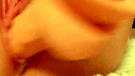 Hey watch her shove that dildo deep into her tight shaved creamy pussy close up