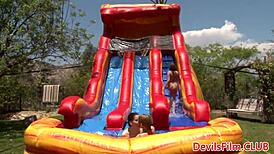 wanna see wet lesbians scissoring with strapons bent over in outdoor orgy close-up?