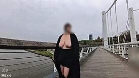 watch my huge saggy natural tits flash wild on the public bridge