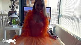 OMG, cosplayer stuffs hairy pussy with banana close-up! 🍌