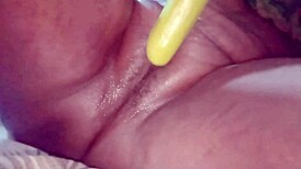 a beauty in lingerie moans loudly orgasming from banana pussy fuck close-up