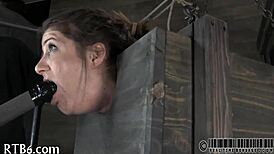 Busty bound trainee receives intense training lesson.