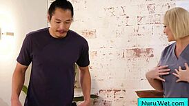Horny mature masseuse Athena Anderson gets pussy pounded by Elias Cash in wet nuru massage!