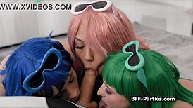 Nataly and two babes sharing dicks in wild threesome fucking fun! 😜