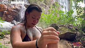 Blonde latina milf juicy pussy licked wildly at cascading waterfall