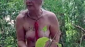 i'm your chained french slave maid flashing tits outdoors masturbating with dildo and clips to orgasm