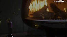 blonde milf masturbates and gets fucked romantically by the fireplace