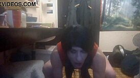 Tgirl clara ludovice strokes her curved cock! Machine pounds her latina ass to cumshot!