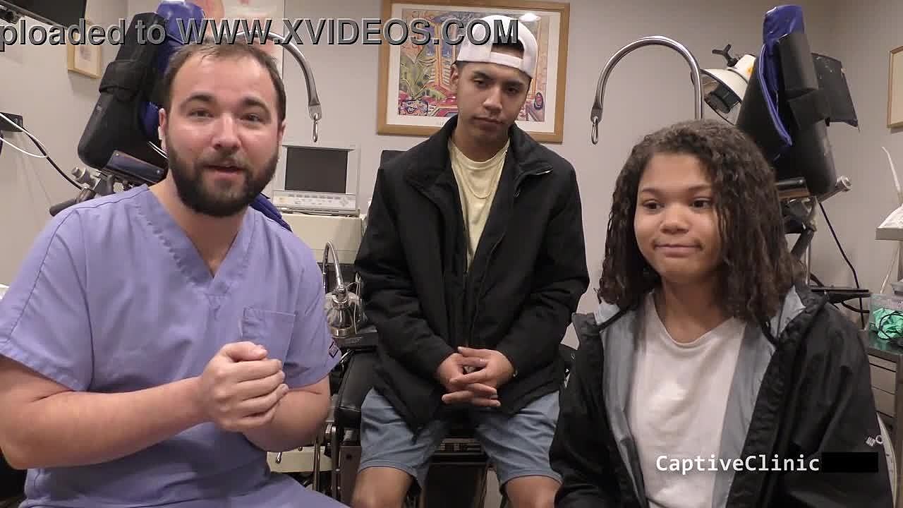 Doctor Tampa humiliates Ebony Solana in cheerleading physical, forcing her to spread for fetish exam with latex gloves