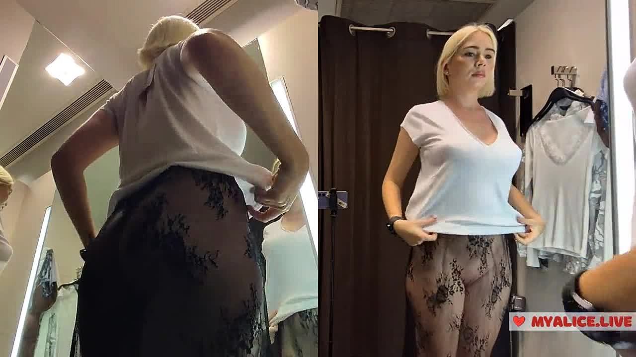 Blonde Tries No Bra Haul Upskirt Panties Peek in Dressing Room Hidden Cam