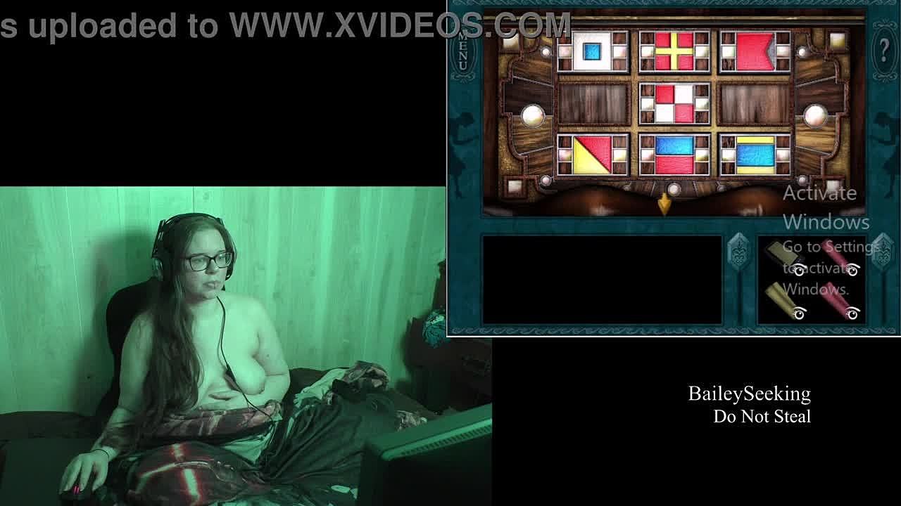 Naked brunette BBW plays Outlast with piercing and tattoos, wanna watch?