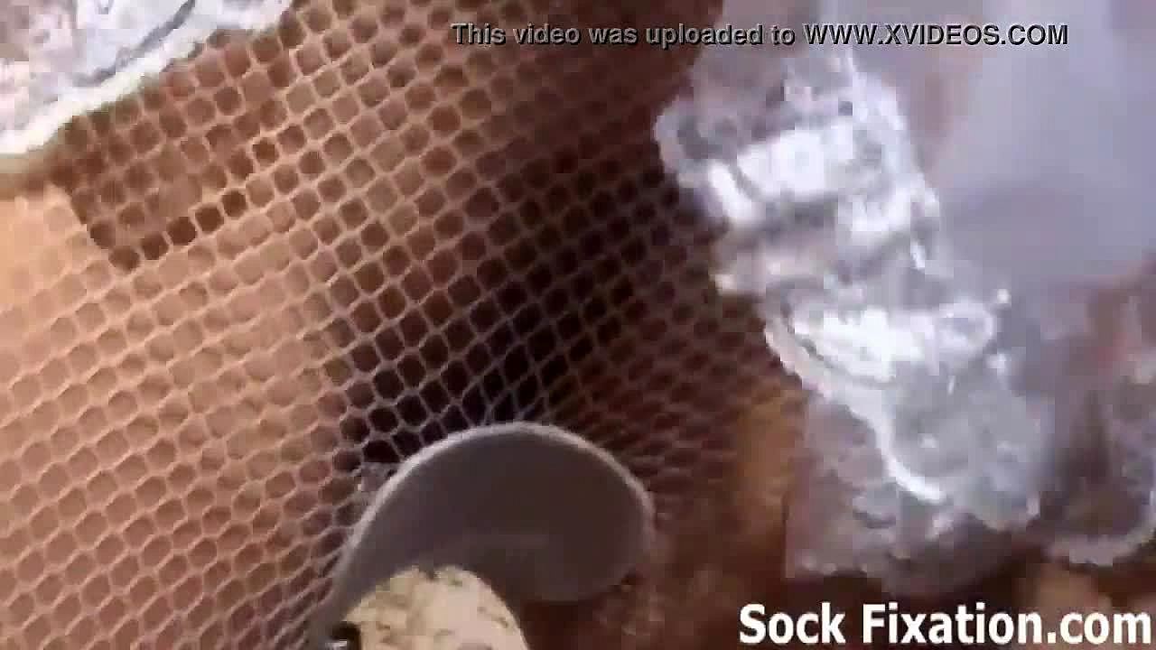 Teen 18+ gives double footjob using dildo socks and bare feet, ending with cum on feet