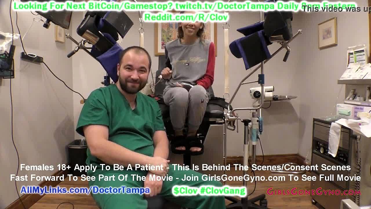 Doctor Tampa humiliates Ebony Solana in cheerleading physical, forcing her to spread for fetish exam with latex gloves