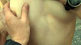 nymph strips outdoors then takes deep anal pounding in vintage style